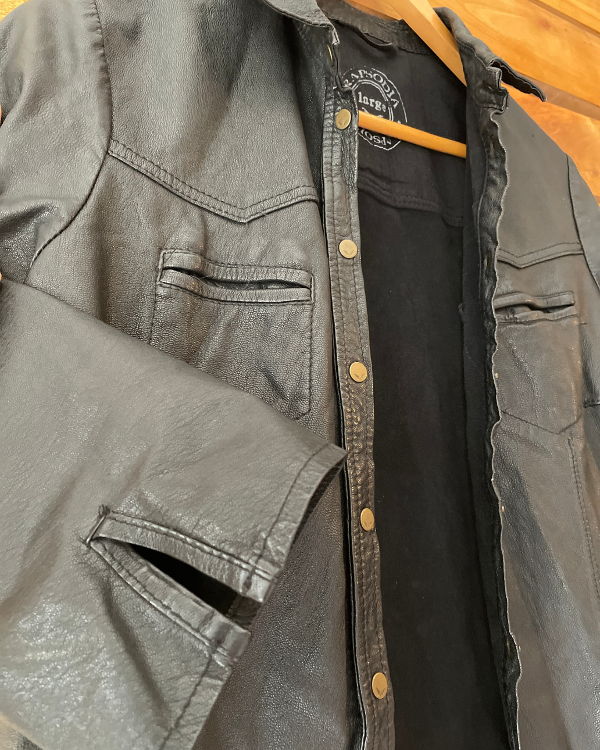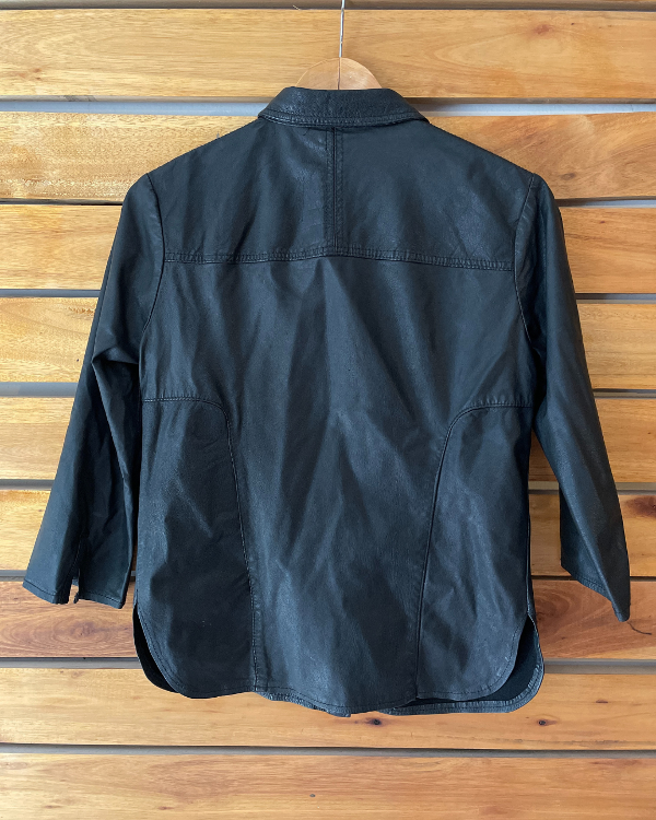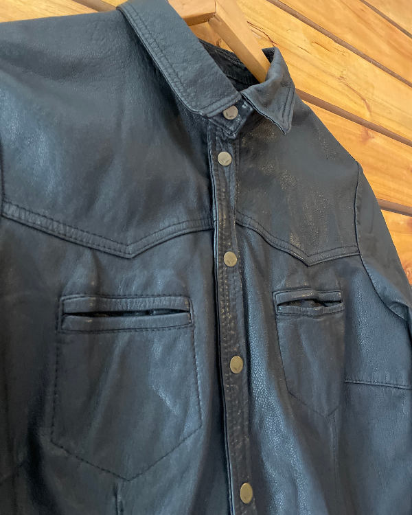 Camisa confeccionada 100% en cuero ovino, corte levemente entallado y con bolsillos tipo ojal en el frente.