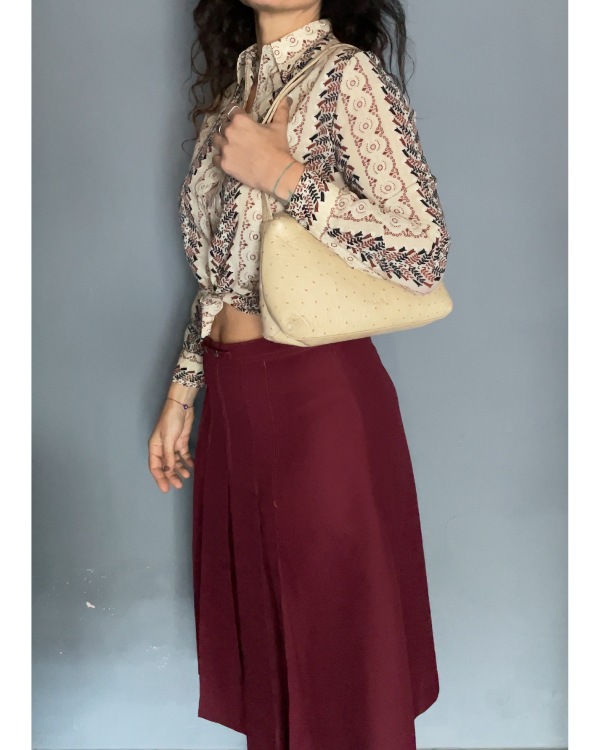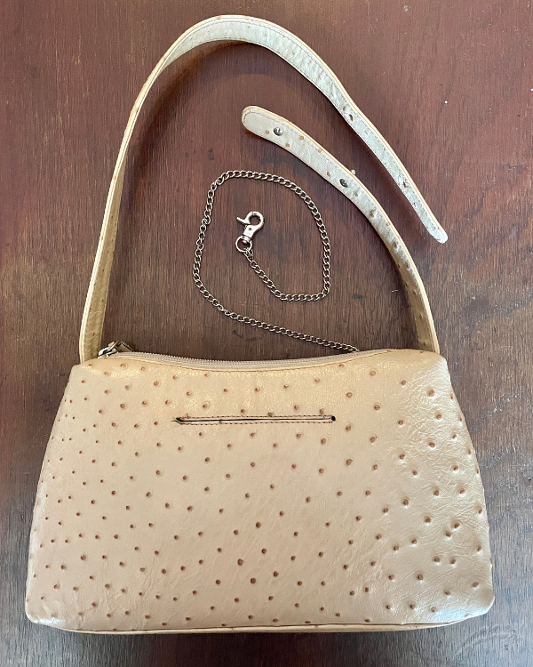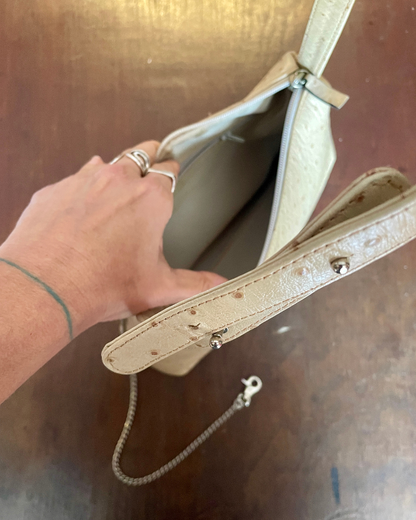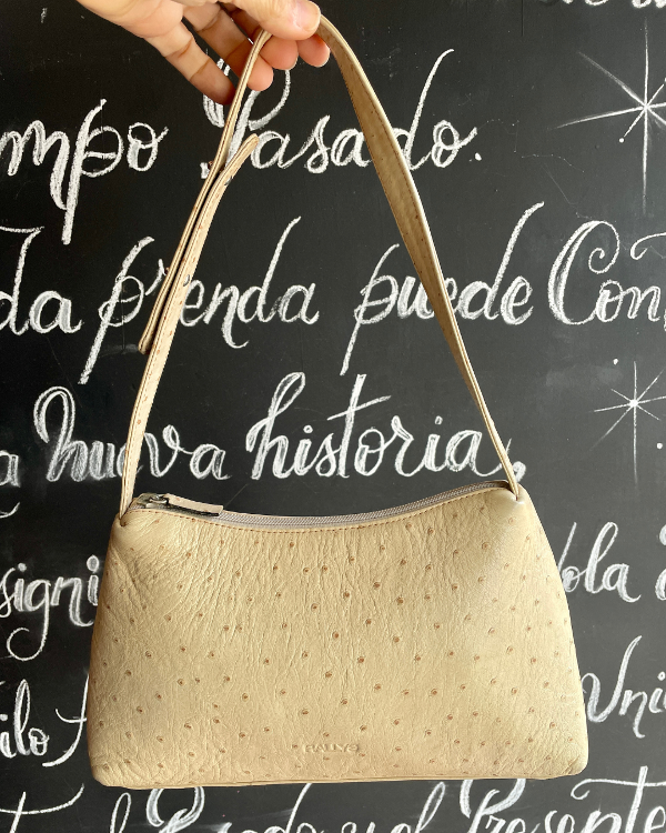 Carterita de cuero texturizado semi rígida color beige.