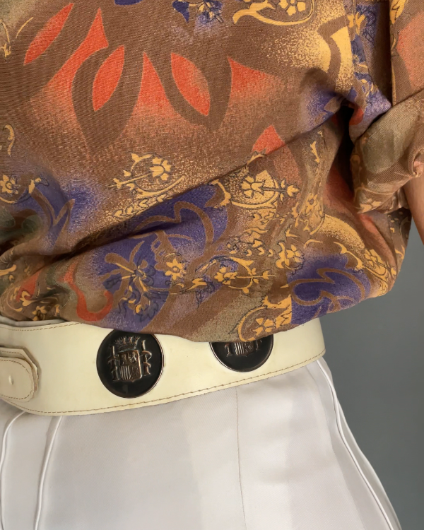 Ancho y envolvente, con terminación fina y decoración de monedas.