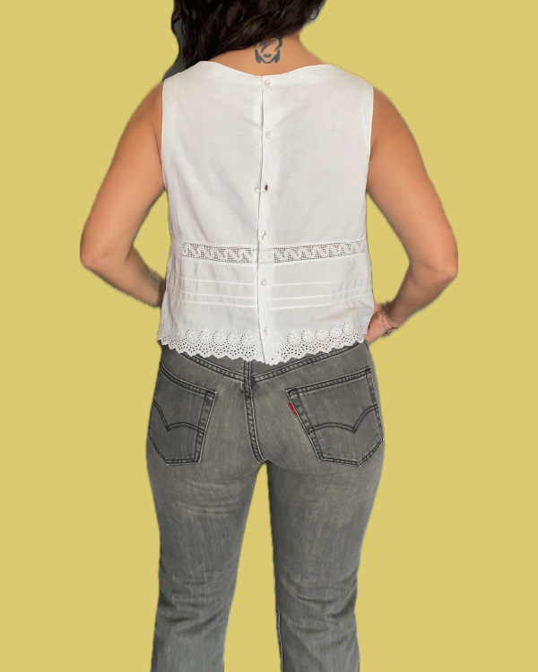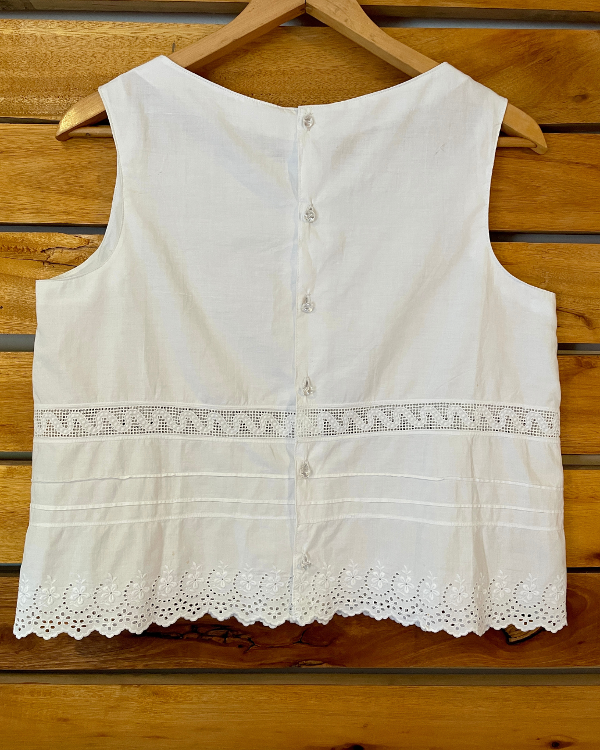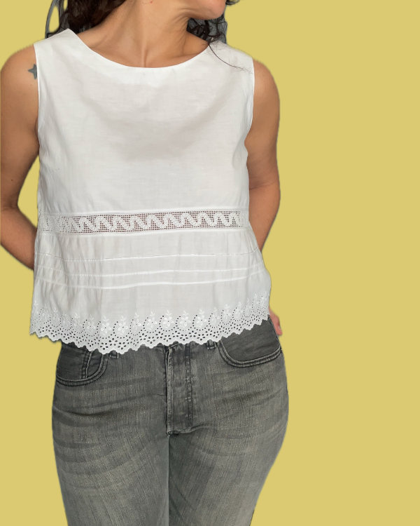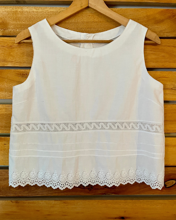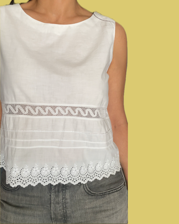 Corte recto con todo el borde bordado y calado en broderie y algodón.