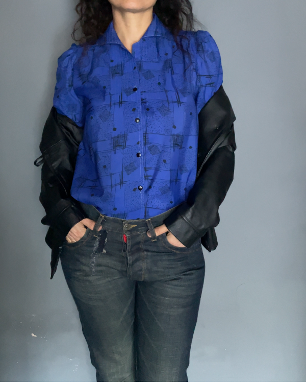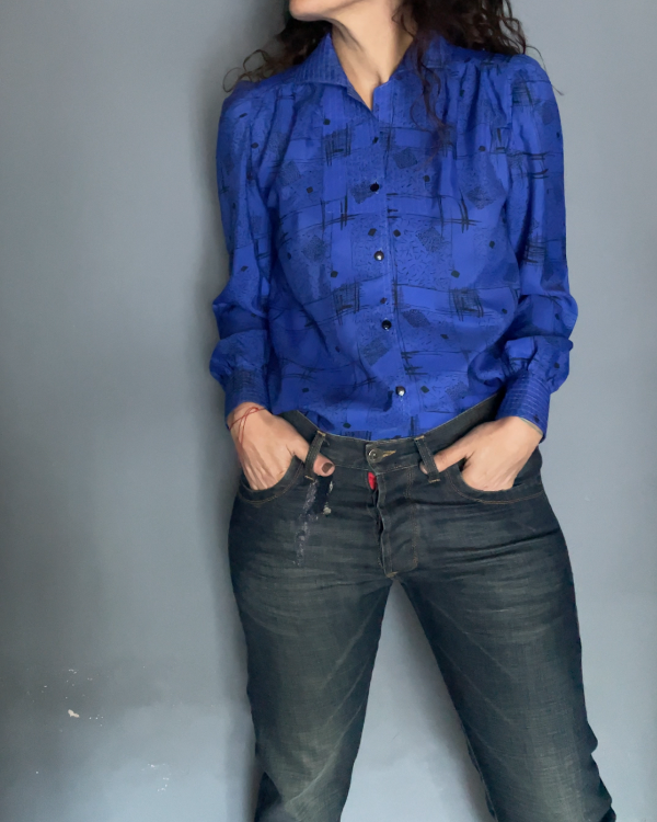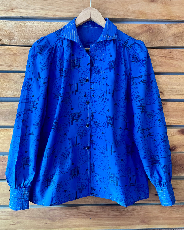Camisa realizada por modista en un poliester sedoso, suave al tacto.