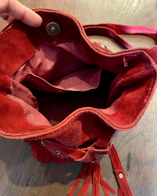 Presenta forrería, amplio espacio de guardado y uno pequeño con cierre.