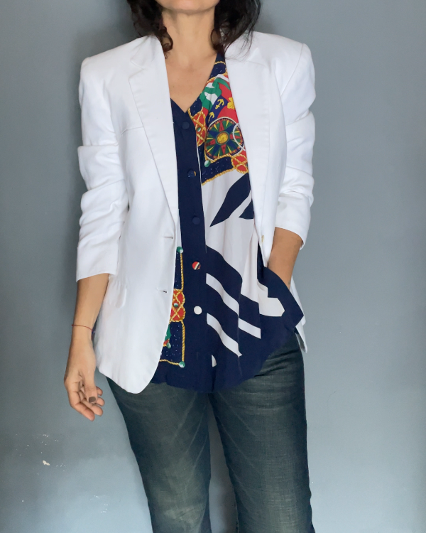 Clásico saco color blanco entallado.