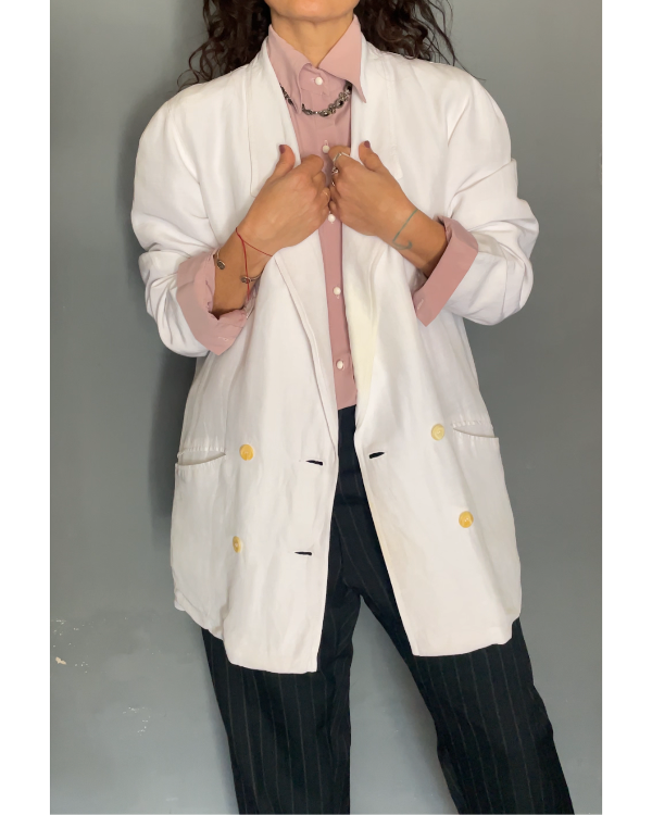 Saco color blanco importado de West Germany, de cuando Alemania estaba dividida, una joya HIS TO RI CA.
