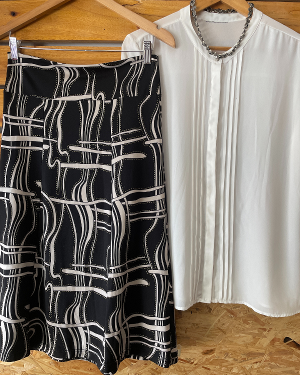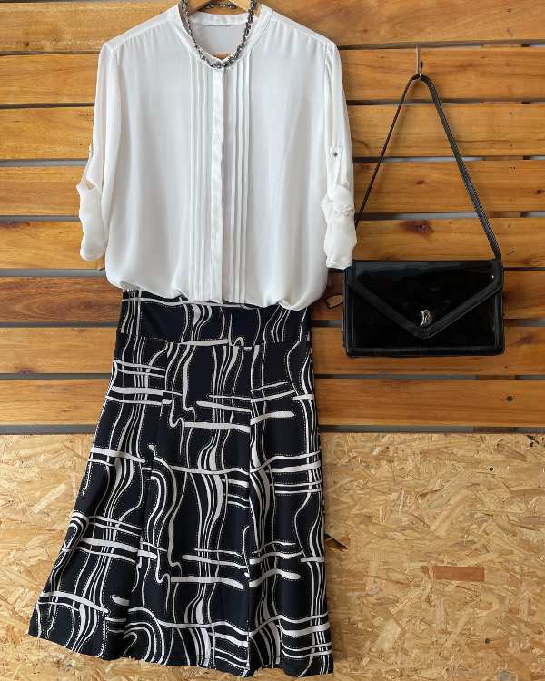 Falda con original estampado en material viscosa elastizada.
