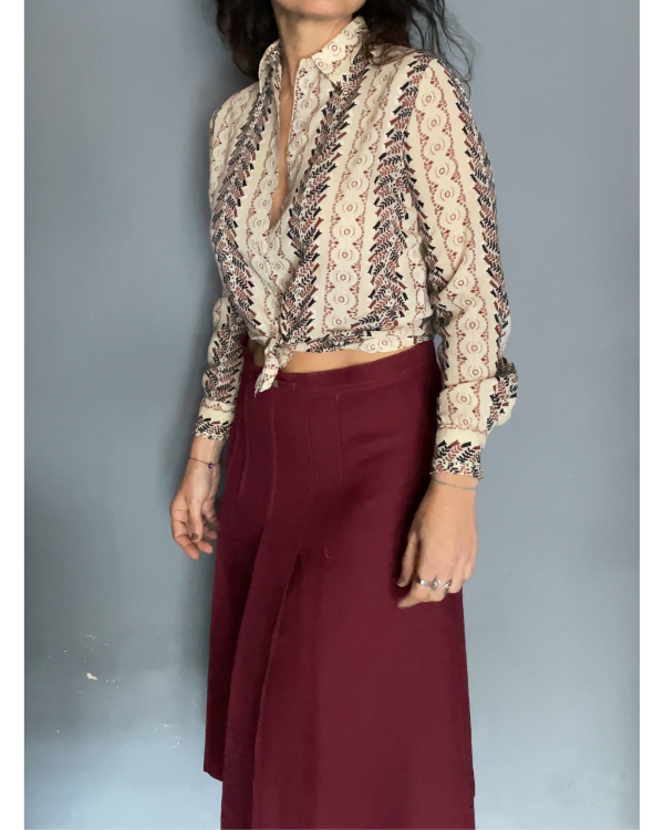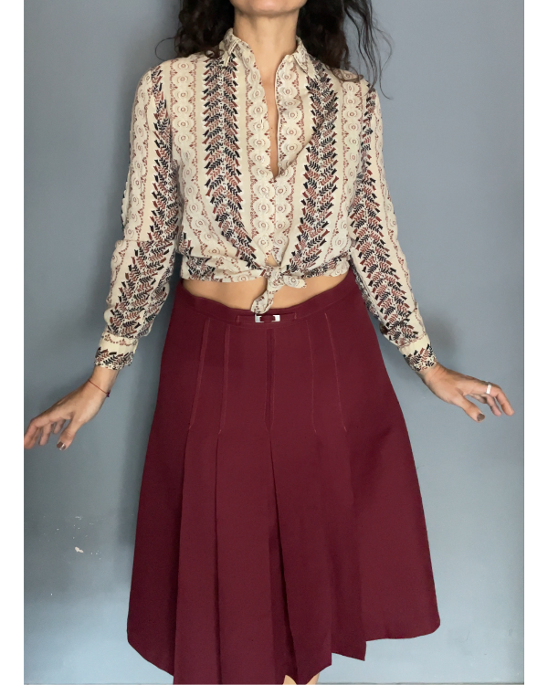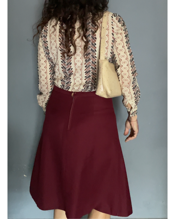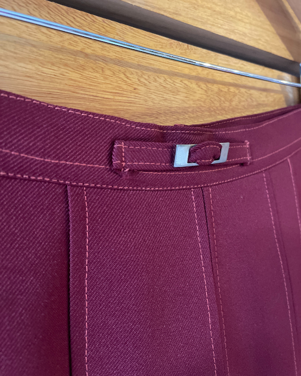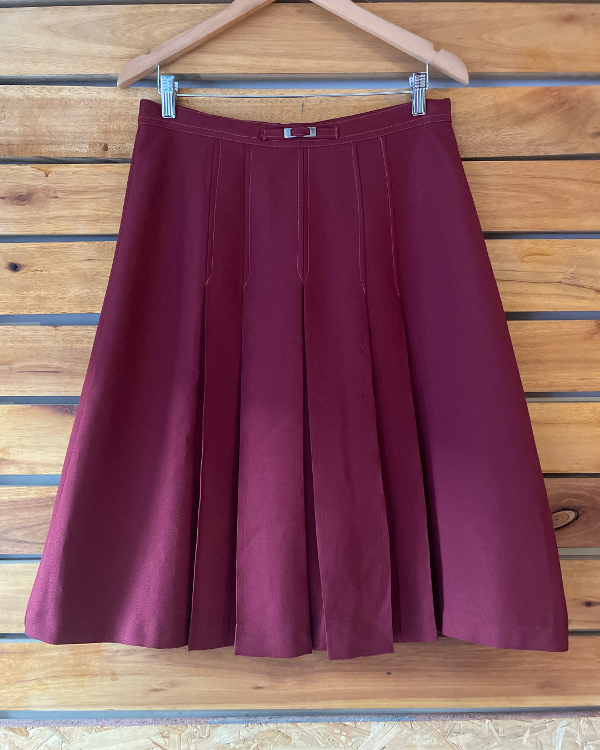 Falda color bordó en un poliester con cuerpo.
