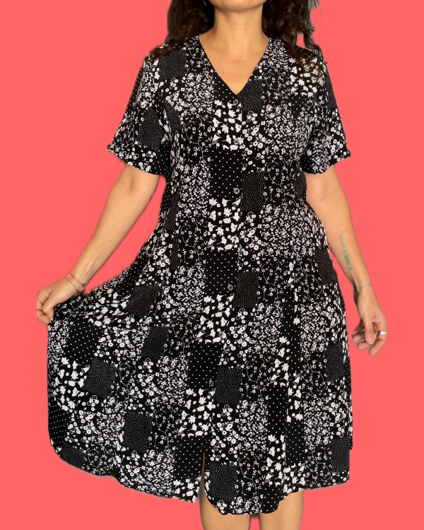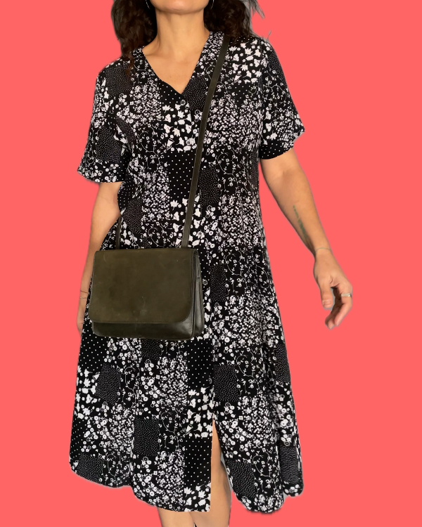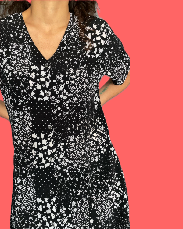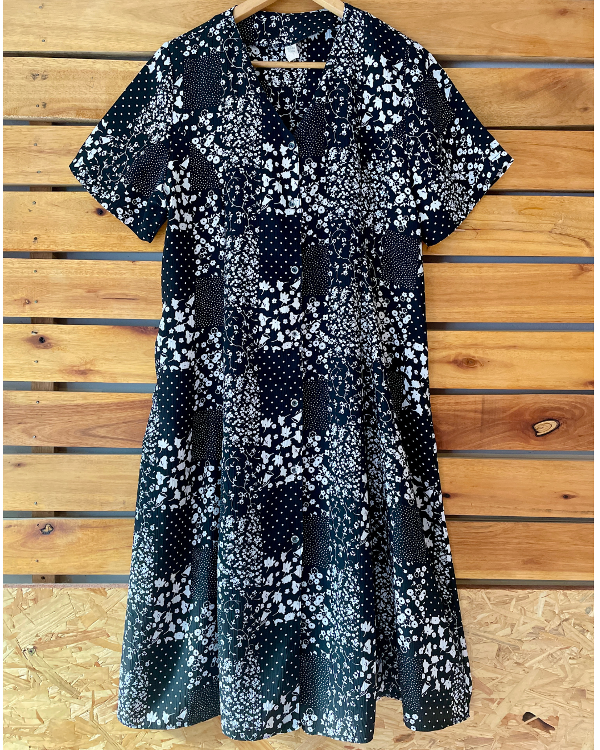 Vestido en un material tipo bambula con hermoso estampado patchwork.