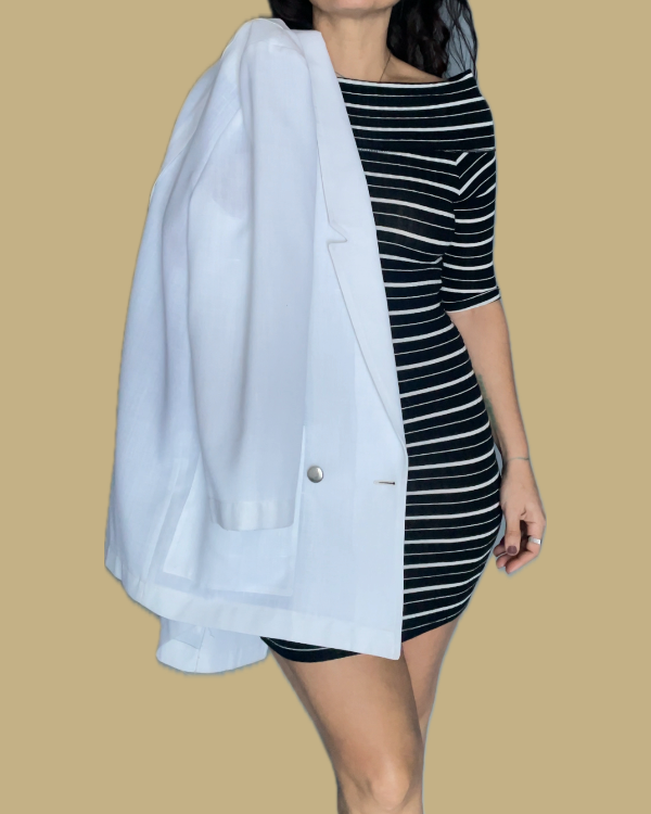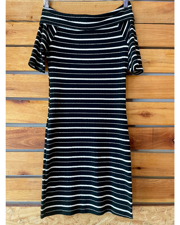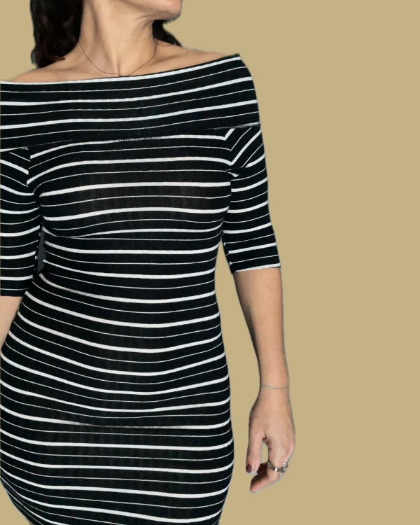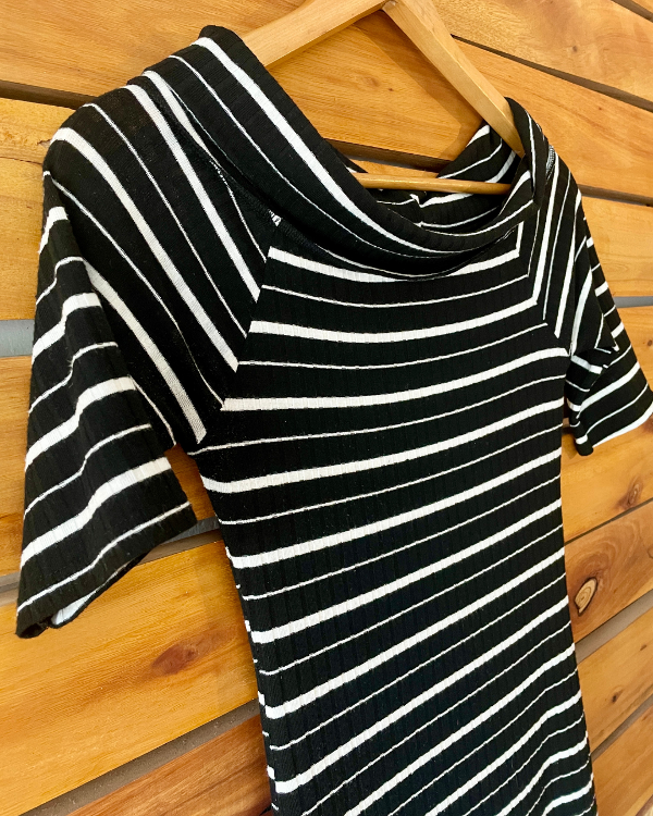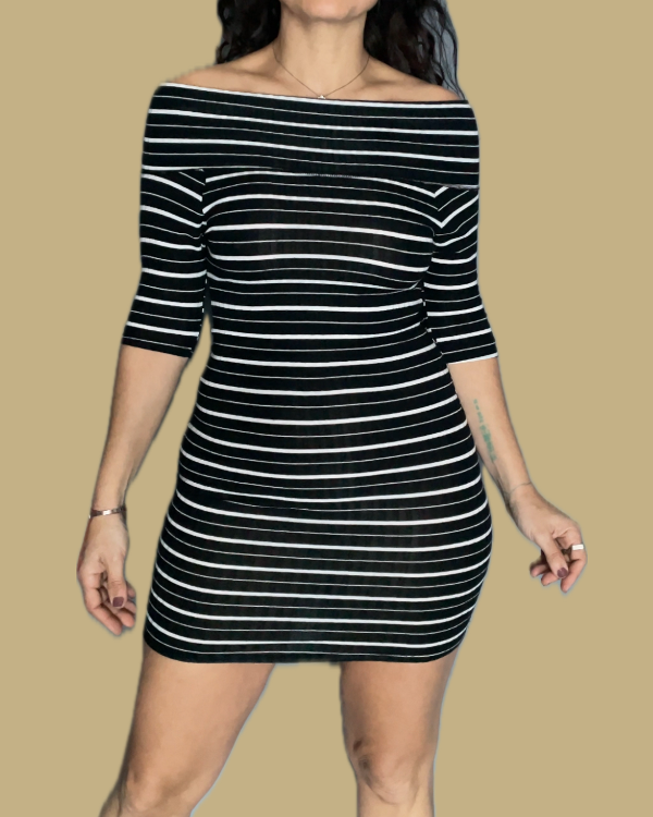 Hermoso vestido mini rayado, en colores negro y blanco.